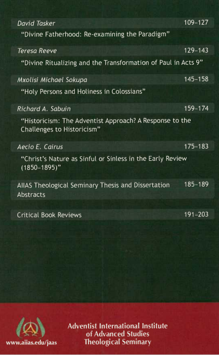 Vol. 11 No. 2 (2008): JAAS - Journal of Asia Adventist Seminary