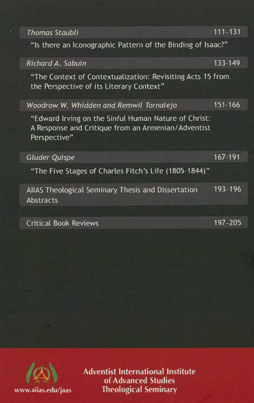 JOURNAL OF ASIA ADVENTIST SEMINARY (ISSN 1908-4862)