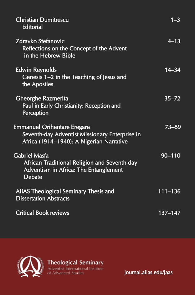 Vol. 21 No. 1-2 (2018): Journal of Asia Adventist Seminary